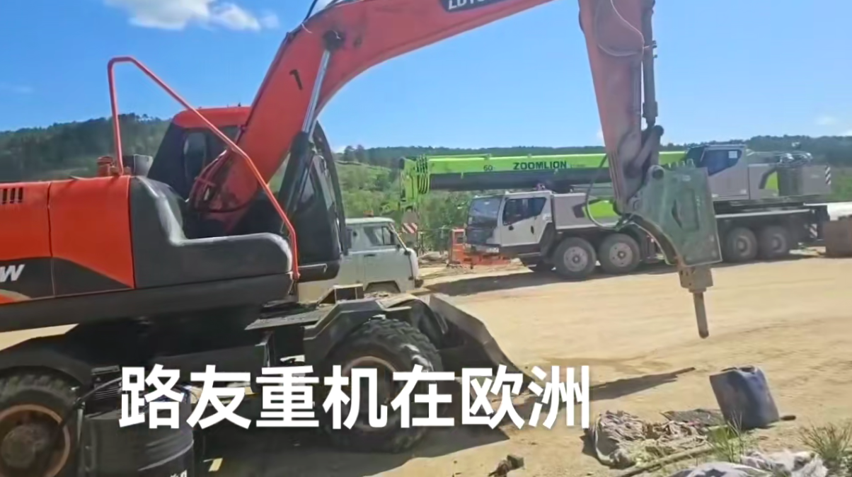 路友重工多功能挖掘機(jī)在歐洲地區(qū)變身炮錘在上工地上叱剎風(fēng)云